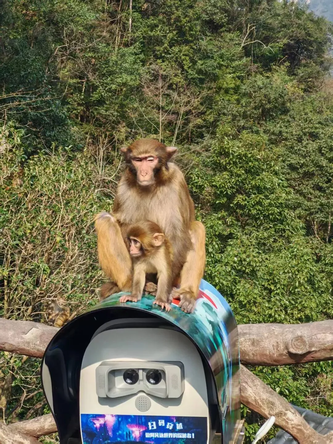 第一天的安排从百龙天梯上到山顶,之后再沿途去到袁家界和天波府。我们从景区进入之后就要去坐电梯了,在电梯入口处还有很多猿神在蹲点,第一天就感觉到这边的野性了说是。
