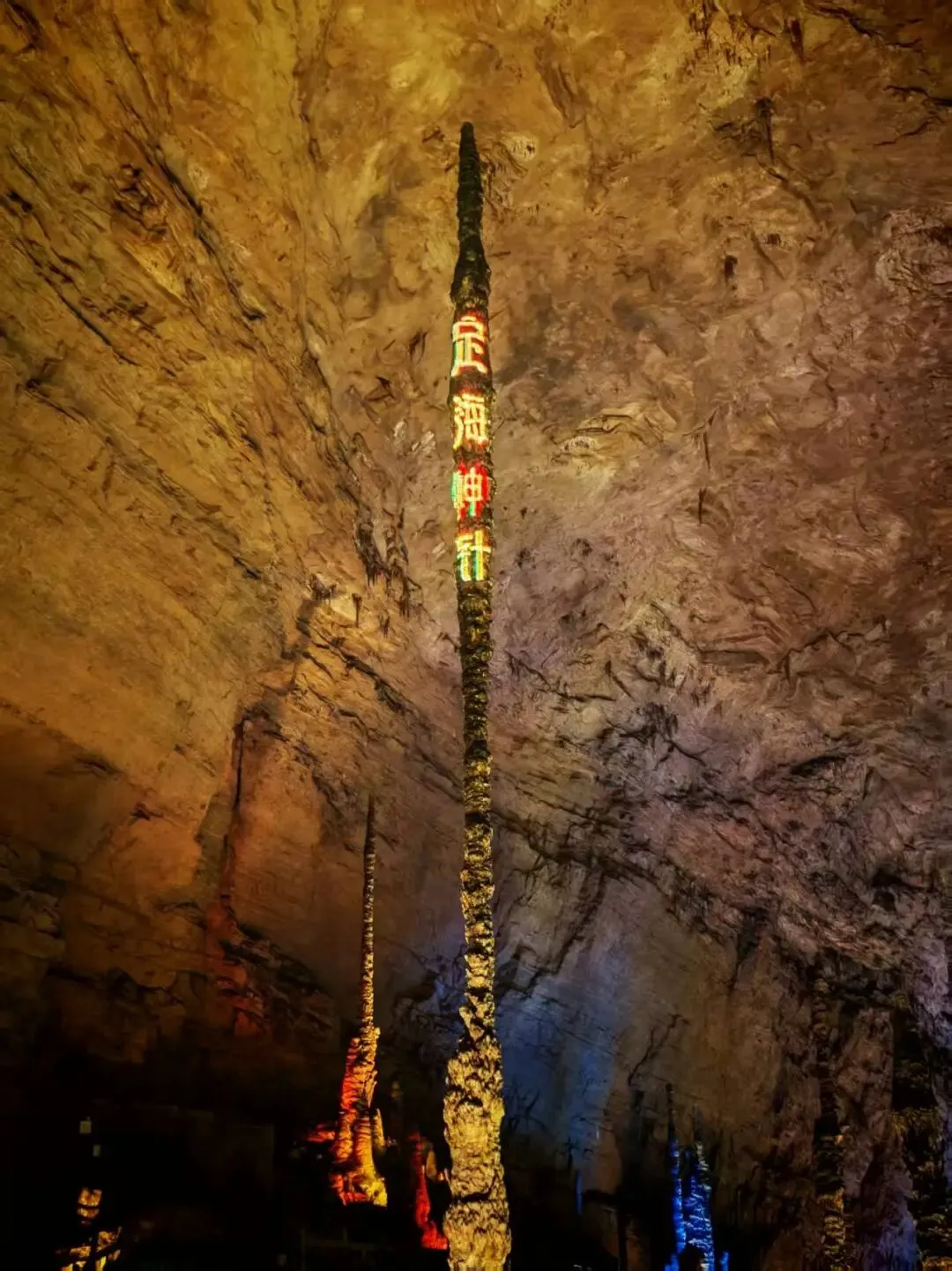 然后就是洞内最有名的景观定海神针了,确实是老高了,听说只要再有几万年就能长到洞顶了,朋友们到时候再来看吧。