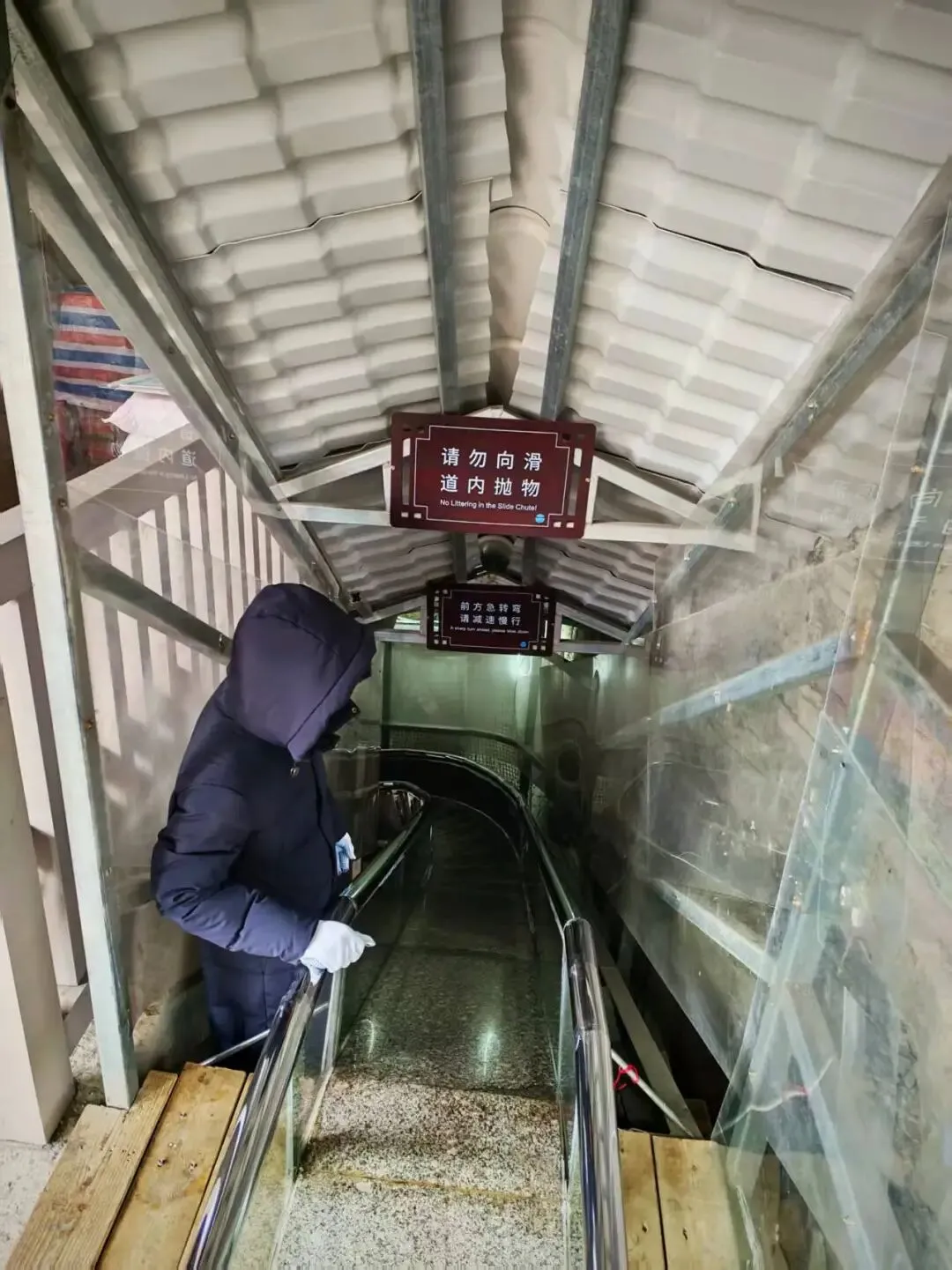 然后我们要坐滑索到对面去,可惜这没法拿手机出来记录下,不然感觉还挺有意思的。然后要做一个滑梯到山脚下,我本以为这个会像水上乐园那种急速向下,结果半路经常由于摩擦力导致卡壳,还得自己手动向前,搞到最后也没滑多长时间。