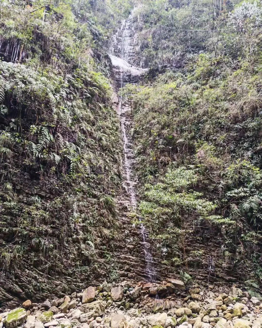 然后就是坐船渡河到对岸步行游览,我们属于是在一个峡谷中间,前几天下的雪还有结的冰都在融化,导致虽然没下雨但是峡谷里还是滴滴答答的一直有水滴落。