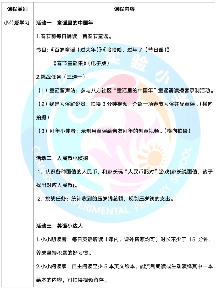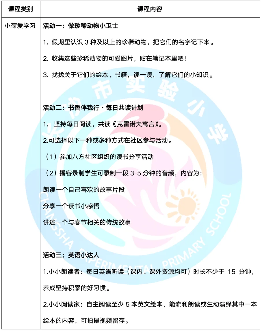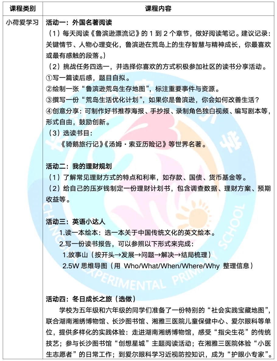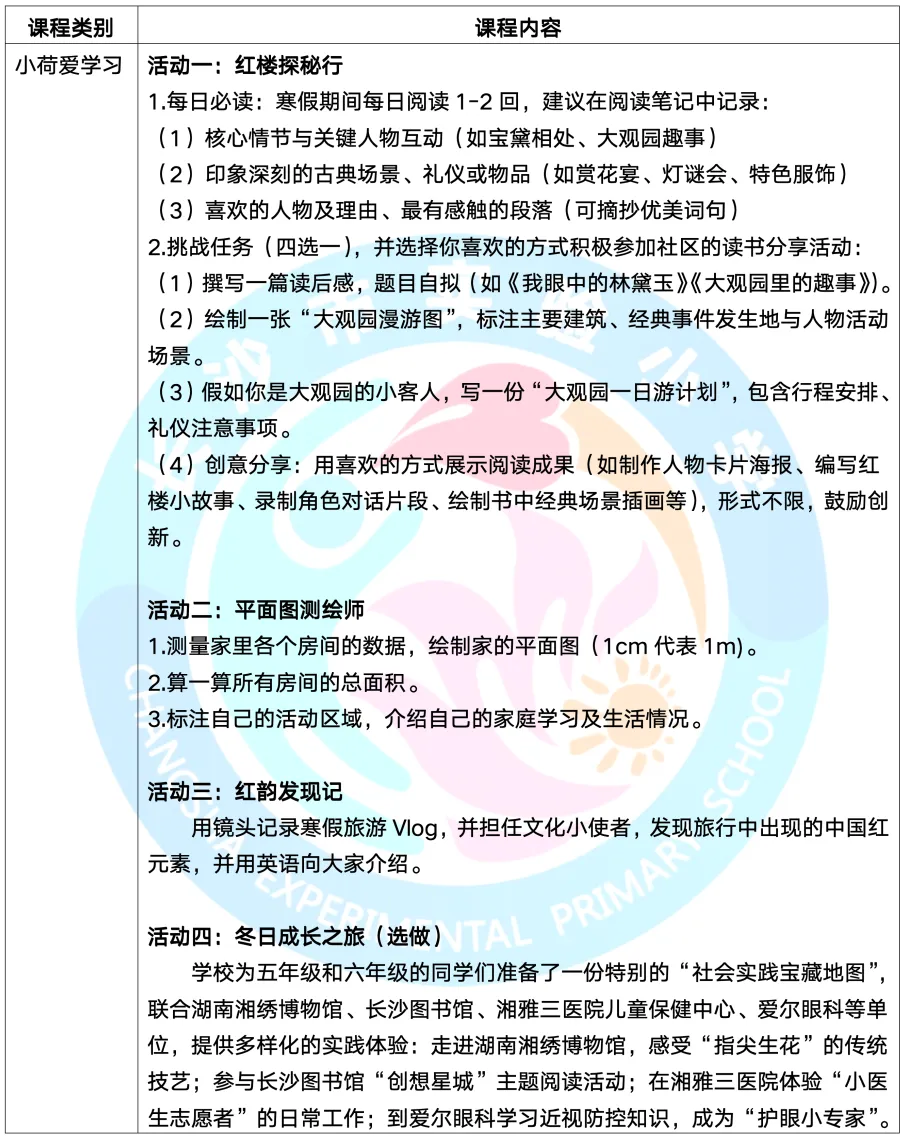 长沙市实验小学2025—2026学年第一学期寒假生活课程指南