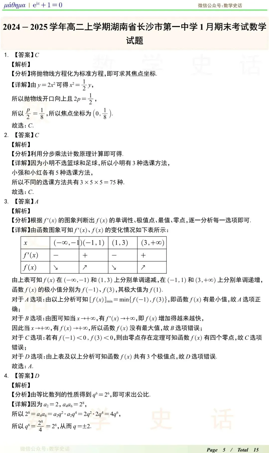 >长沙市一中期末考试试题