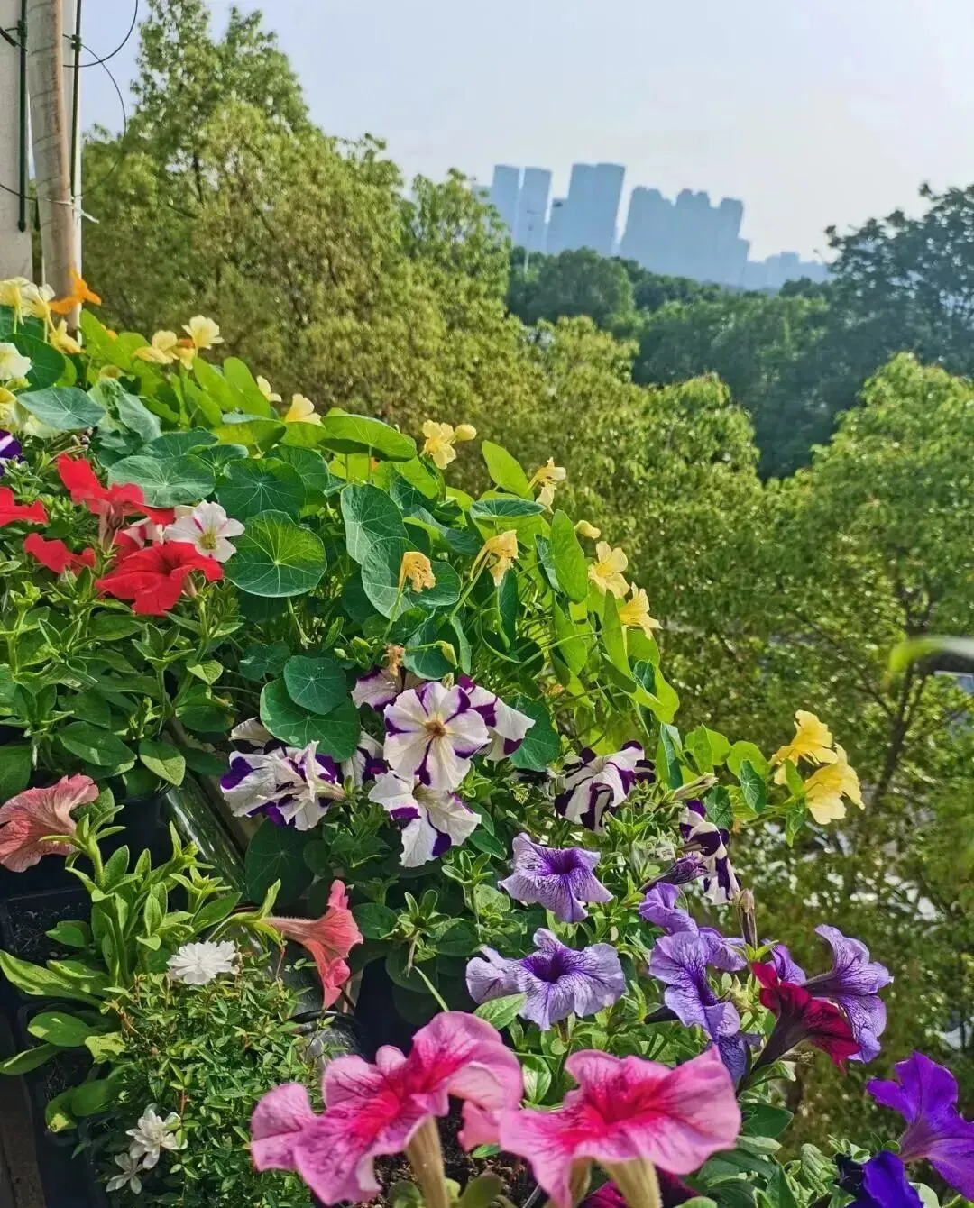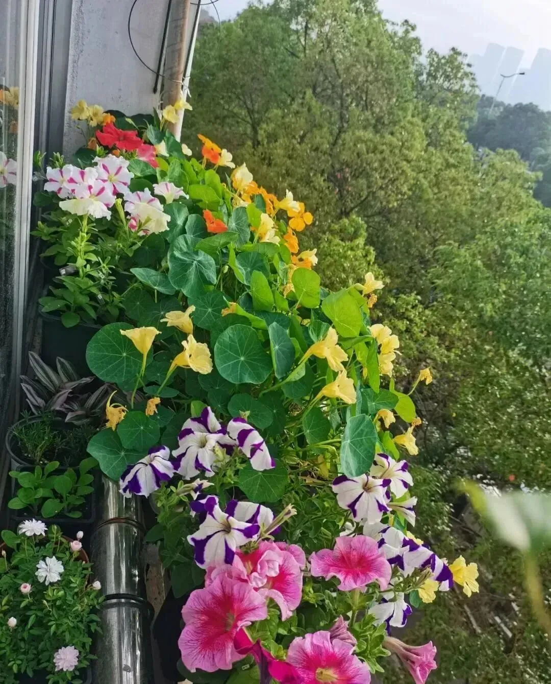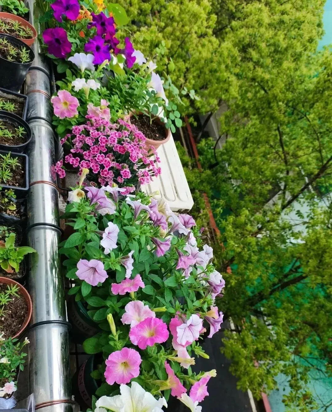 长沙有个女大学生 , 愣是把宿舍窗台变成了空中花园 , 盆盆爆花 , 四季不断 , 看得我酸了。