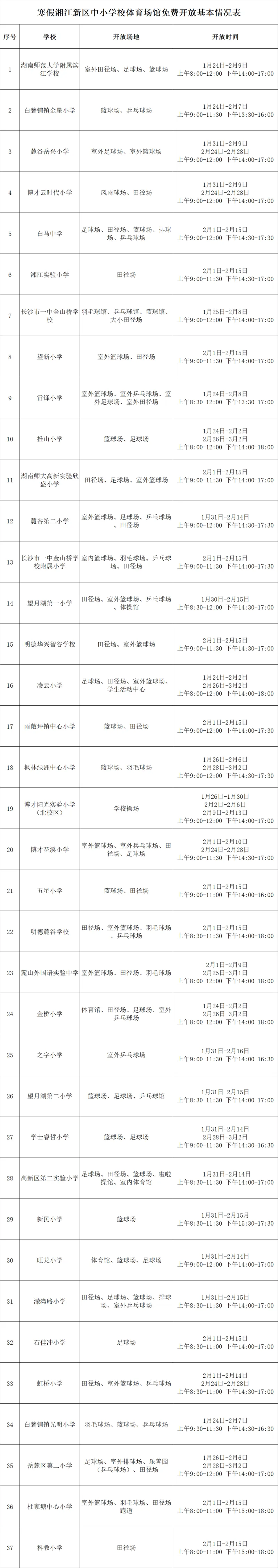 为进一步浓厚“全民健身”氛围,更好地满足群众就近健身需求,今年寒假期间,湖南湘江新区76所中小学校的体育场馆免费对外开放,涵盖田径场、足球场、篮球场、游泳馆等多样化设施。