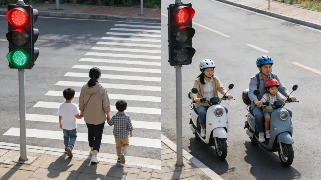春节期间人流车流密集,请教育孩子自觉遵守交通法规:过马路走人行横道,不闯红灯,不翻越隔离栏;不在马路上追逐打闹。严格遵守骑行年龄规定,严禁未满12周岁学生骑自行车上路,严禁未满16周岁学生骑电动自行车上路。骑乘电动自行车时,家长和孩子均需规范佩戴安全头盔。不乘坐无牌无证、超员超载及非法营运车辆。家长应以身作则,文明出行,做好榜样。