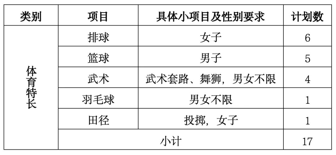 1.体育特长生类考生按照文化素质测试成绩(300分)+技能测试成绩专项测试(300分)进行核算,满分600分,其中专项技能未能达到180分以上的考生不予以录取。