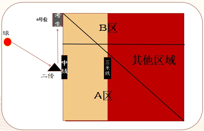 如图 4-5 所示,半场分为A、B两个区域,A区属于三米线以内区域,B区属于场地内三米线以外的区域。