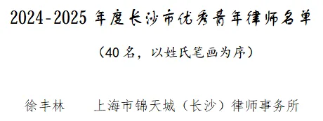 荣誉|锦天城(长沙)律师事务所徐丰林律师荣获“长沙市优秀青年律师”称号