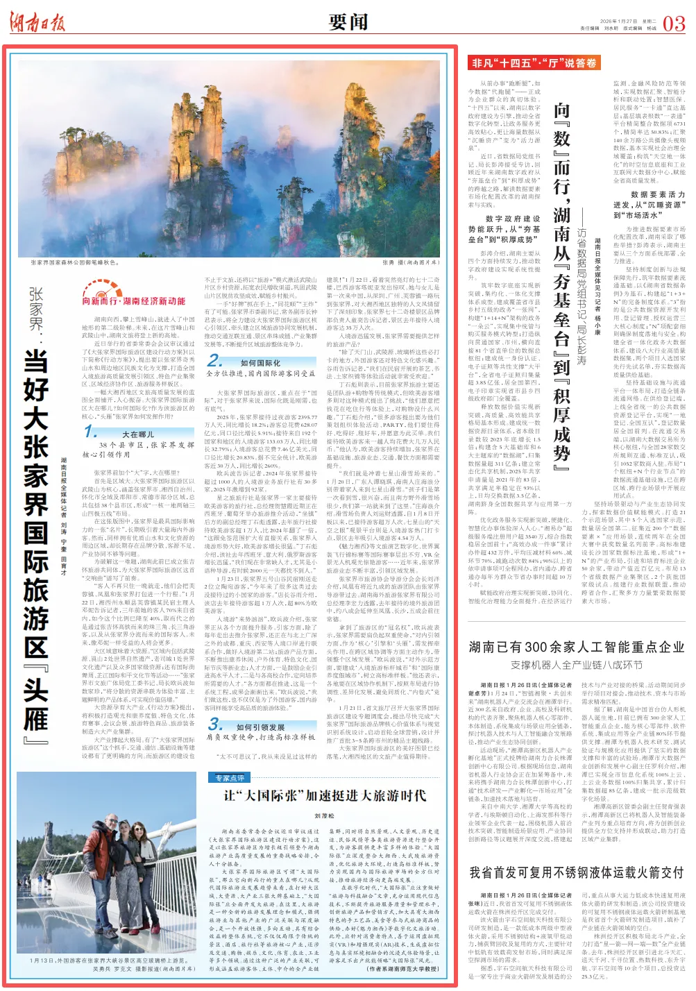 一幅大湘西地区文旅高质量发展的蓝图全面铺开,人心振奋。大张家界国际旅游区大在哪儿?如何国际化?作为该旅游区的核心,“头雁”张家界如何发挥作用?