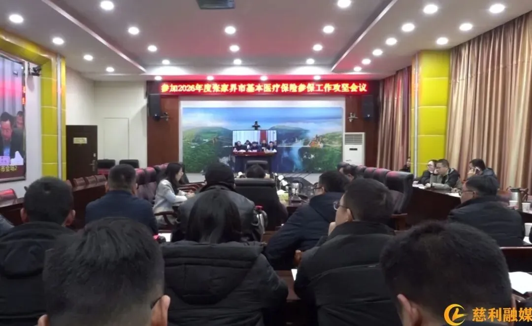 1月26日,慈利县收听收看2026年度张家界市基本医疗保险参保工作攻坚会议,县领导朱爱民、李依芳在慈利分会场收听收看。