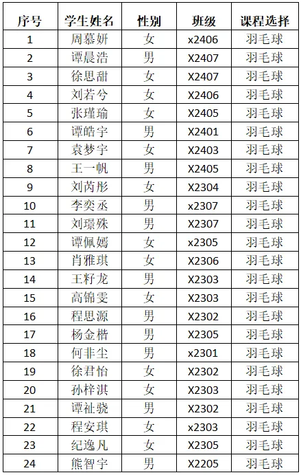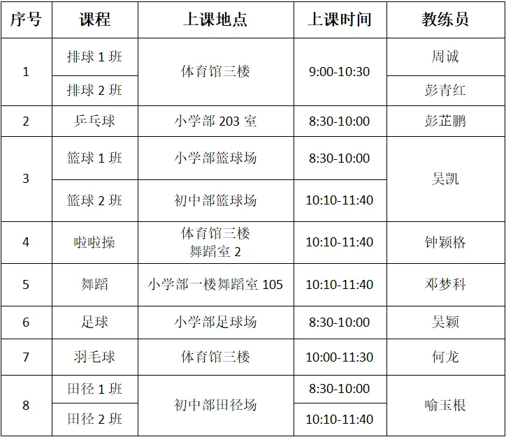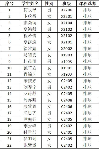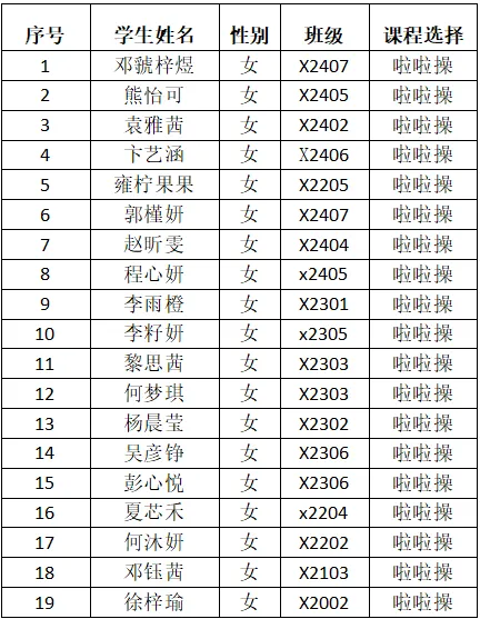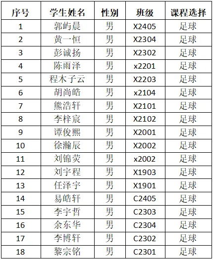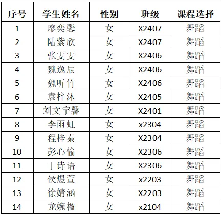 热烈祝贺以下同学顺利成为长沙实验高裕学校2025年寒假少年宫学员。让我们乘着艺体之风,开启美妙的旅程吧!现将2025年寒假少年宫课程安排及录取名单公布如下(请被录取的学员扫描下方对应班级的二维码进群,联系教练员):