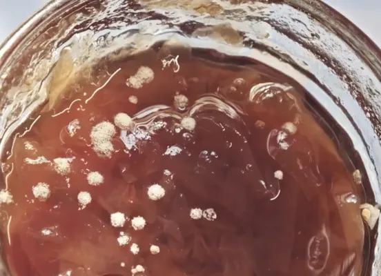 1月22日下午两点,湖南长沙市民刘先生在步步高梅溪天地的“好利来”蛋糕店购买了一罐玫瑰酱,第二天早上9点半开罐后,他发现酱里布满了霉菌。刘先生告诉记者,有些菌落都已经长到液体里面,刘先生质疑:“这也不是这几天能长起来的啊”。