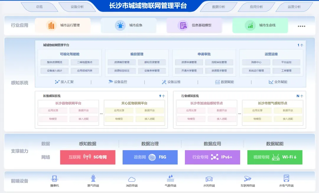 基于这一思路逐步推进长沙城域物联网管理平台的建设和应用,并实现全市基础资源汇聚、资源场景赋能、感知数据运营的有机融合。