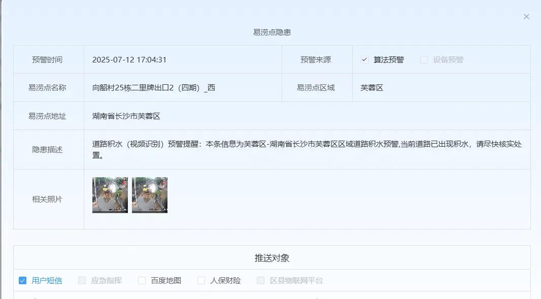 (2)一处治理、多处应用:在城域物联网管理平台实现数据治理和预警后,推送应急、保险、百度、城市居民(短信提醒)等多类用户对象,实现一类数据的多处应用。