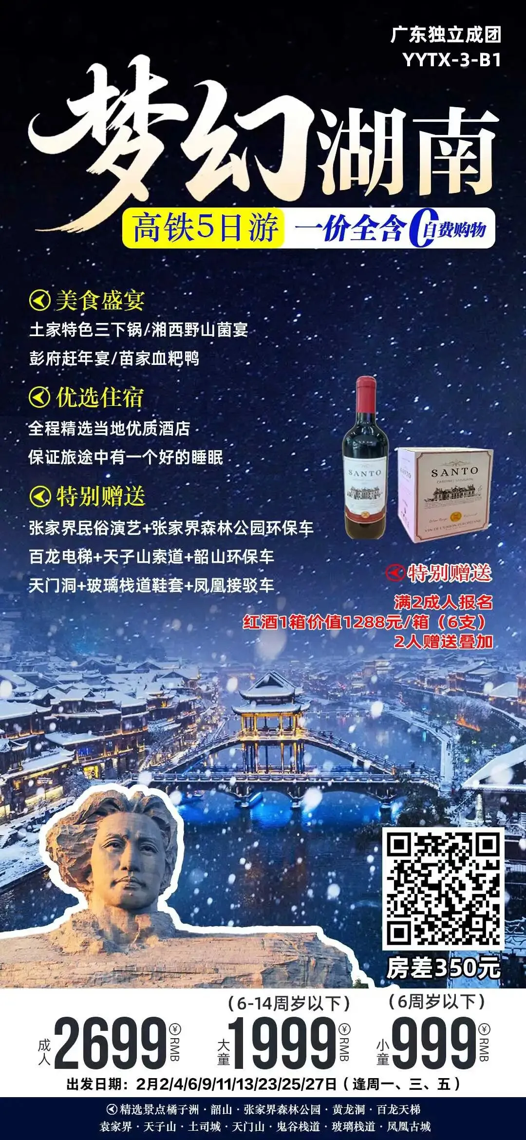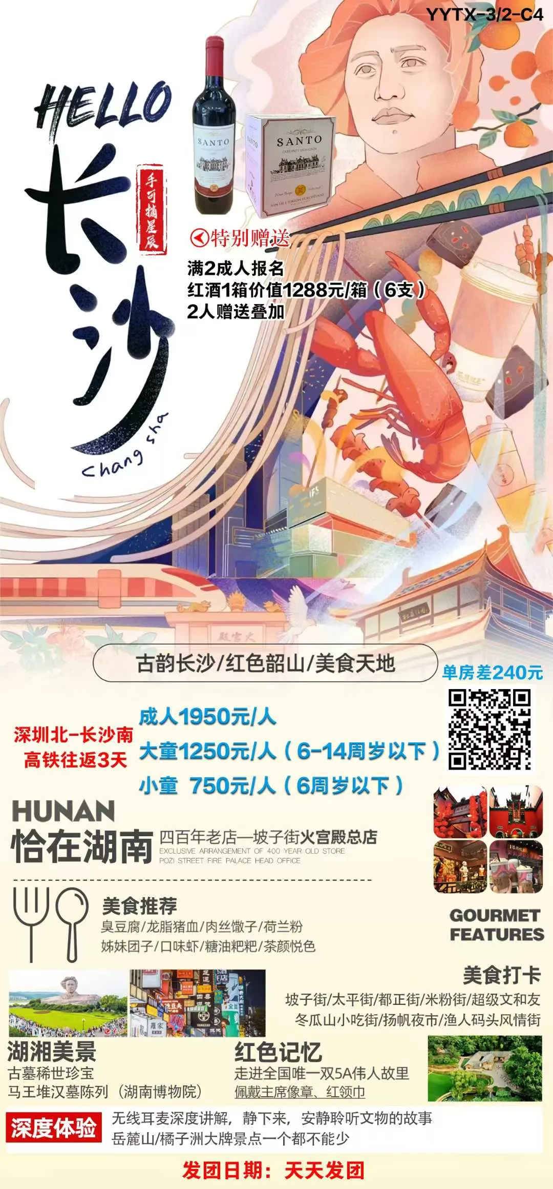 湖南,魅力无穷!张家界奇峰异石,如梦如幻。凤凰古城宁静古朴,沱江流淌诗意。岳麓山书香弥漫,橘子洲头气势磅礴。品尝湘菜的热辣,感受湘音的韵味。来湖南,沉浸在自然与人文的盛宴中,留下美好回忆。
