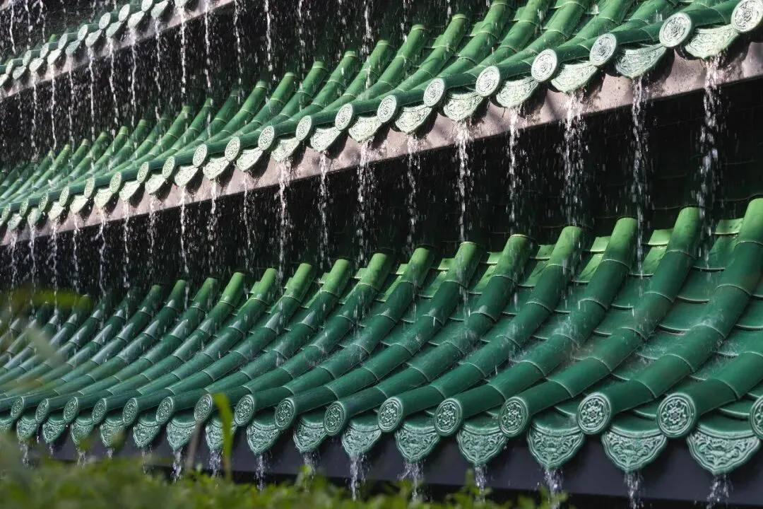 栖心之境与文脉传承,一座琉璃瓦叠瀑作为景观空间的核心特色,灵感源自长沙传统建筑岳麓书院御书楼三层飞檐的屋顶形式及爱晚亭样式。这一非凡空间巧妙融合了传统与现代设计,水流沿瓦片层层跌落,汇聚湖湘文化精神。瓦当导水、滴水引流、筒瓦扣合、板瓦铺叠,以现代弧形设计重塑古韵之美,精心铺设成"导-引-承-覆"四重精致的流水聚气场景,采用本地绿瓦打造的广阔屋顶延伸至宁静的瀑布。琉璃瓦叠水和林下休闲空间结合,成为独处与冥想的“城市山林”。无论是商务洽谈还是家庭聚会,这里都堪称完美,自然的声影与视觉享受交织,营造出令人难忘的体验。