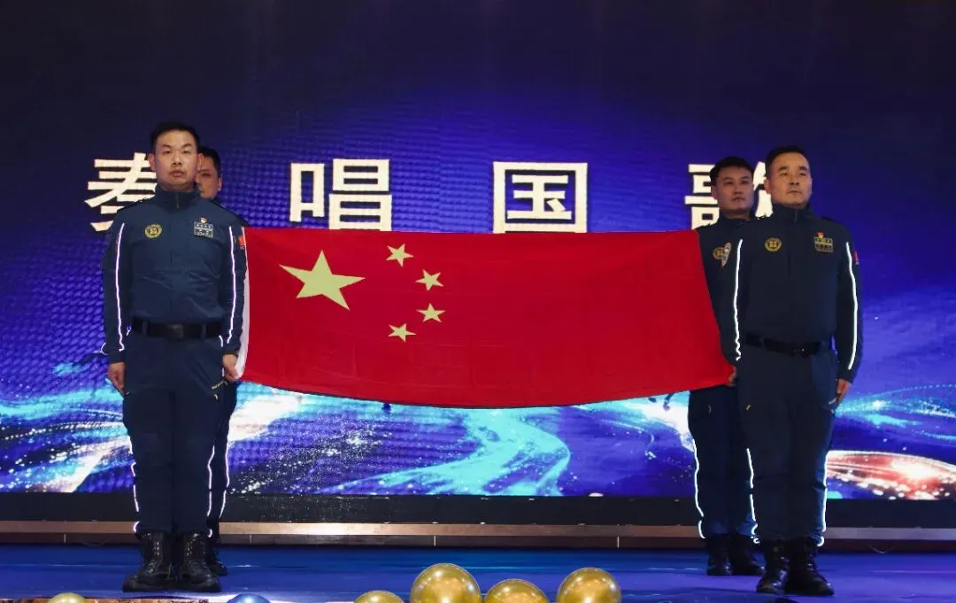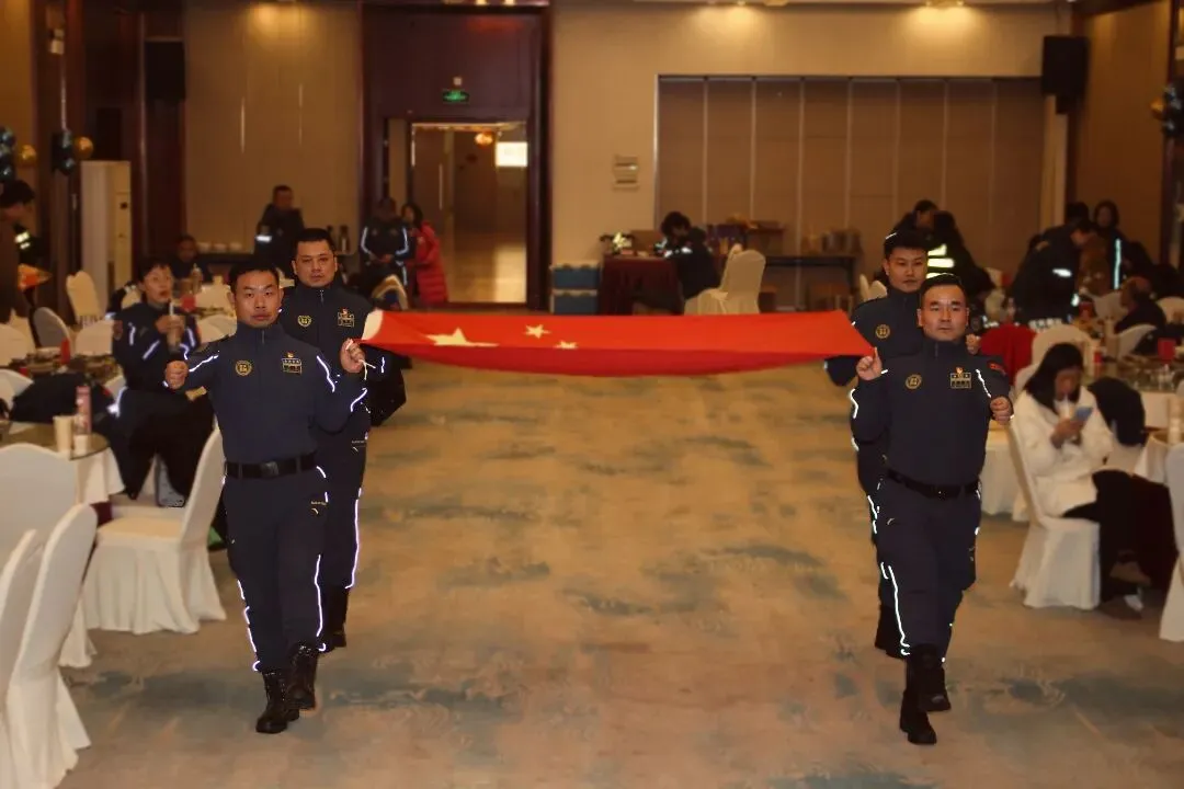 在庄严的出旗仪式、奏唱国歌中,我们活动拉开帷幕。全体队员起立,面向国旗行注目礼,迎接国旗入场,雄壮的国歌响彻会场。家国情怀在每个人心里回响,更凝聚起蓝天人同心同德、携手共进的信念,让“同在蓝天下,携手为公益”的信念更加深入人心,也让每一们队员更加坚定了守护一方平安的责任与担当。