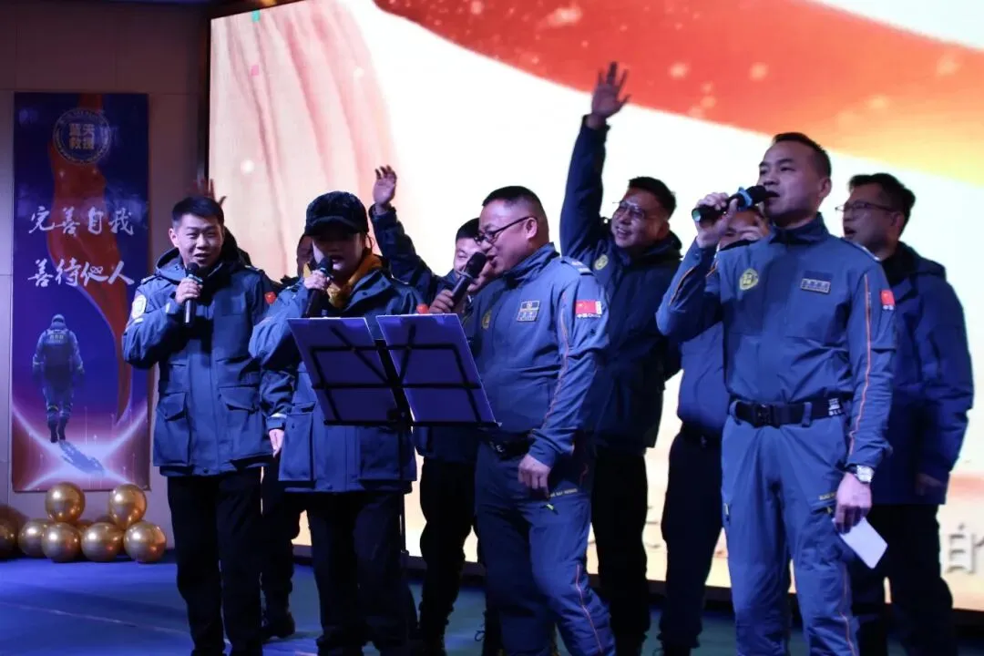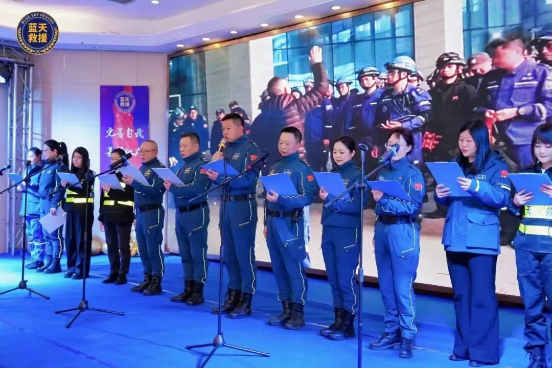 在温馨而庄重的氛围中,我们一起观看《回顾2025》的精彩视频。一张张珍贵的照片、一段段感人的视频,重现了过去一年里救援队的高光时刻:从走进学校、社区开展公益宣讲,到普及防溺水、消防安全、急救技能等知识的暖心时光;从承办蓝天救援队“光之使命”救援技能国际挑战赛的精英荟萃,到开展区域蓝天救援队技能考核各展身手的专业瞬间;从汛期、突发险情中逆行而上的救援现场,到大型活动中坚守岗位的保障时刻;从新一期志愿者的加入培训、考核,到日常夜幕下的常规培训、训练……每一个画面都记录着蓝天人的汗水与付出,每一个瞬间都彰显着公益救援的温度与力量,让现场队员们倍感自豪与感。