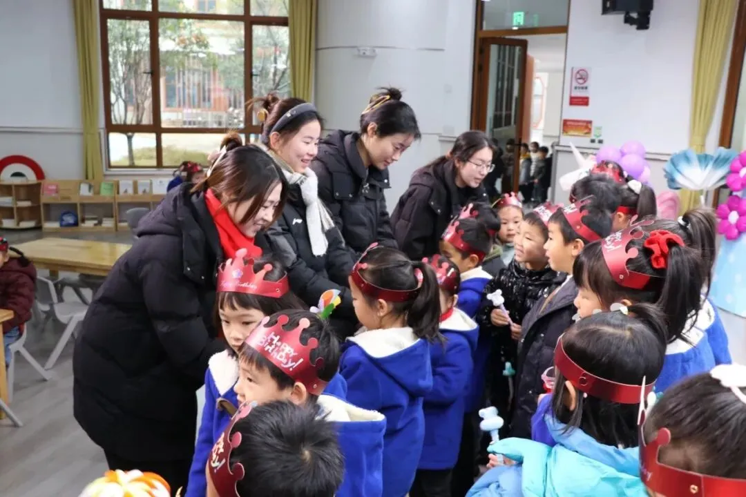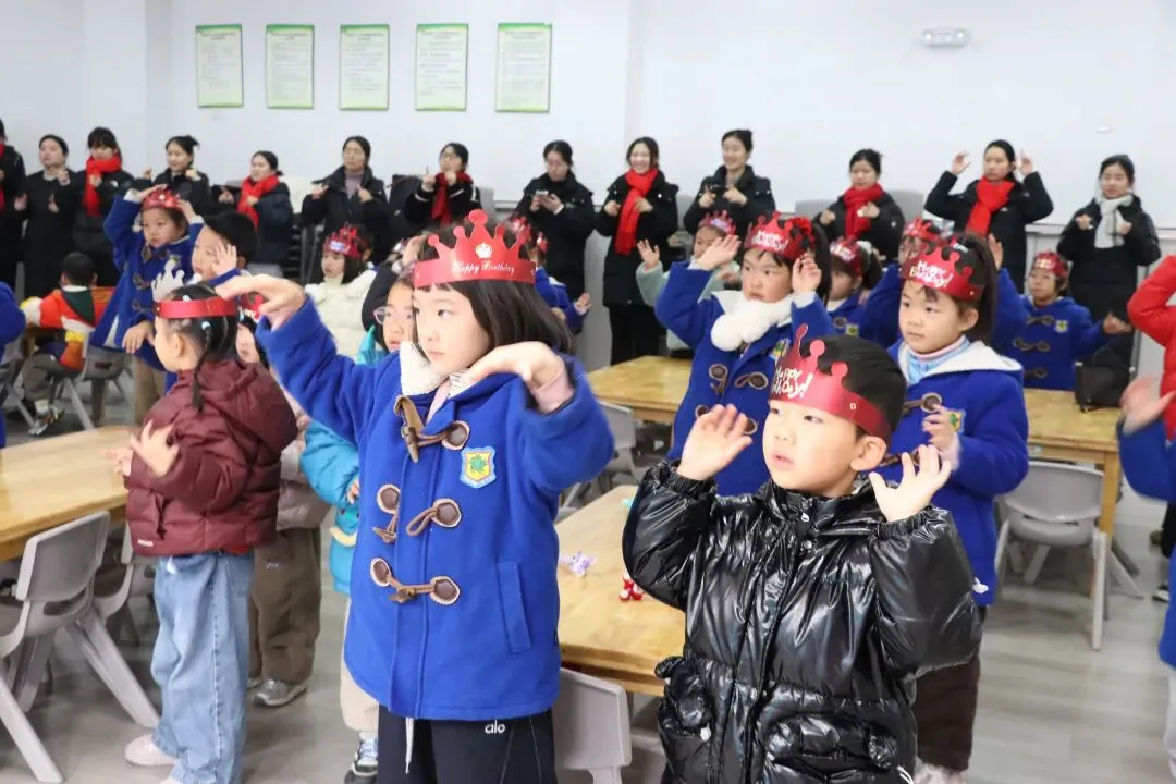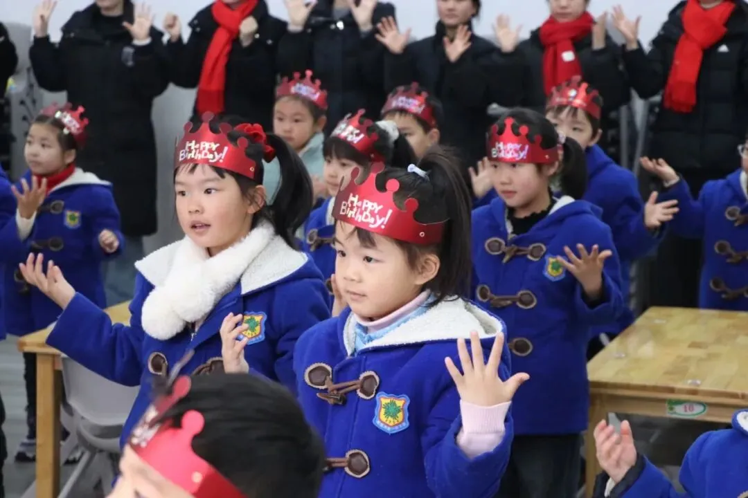 在欢快而治愈的旋律中,生日会正式拉开帷幕。“高高城堡青青嫩芽…” 孩子们用清脆、真挚的嗓音唱响园歌,稚嫩的歌声里满是对集体的热爱。他们在幼儿园这个充满爱的大家庭里尽情嬉戏、快乐成长,每一张笑脸都像冬日里的小太阳,温暖了整个会场。
