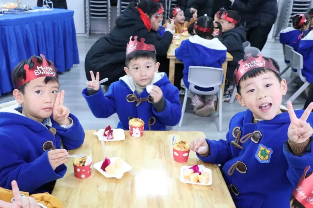 香甜软糯的蛋糕、新鲜可口的水果,是厨师伯伯精心准备的冬日甜蜜!这份裹着“成长魔法”的美味,是对小寿星们的美好祝愿。闭上眼睛,许下新年与生日的双重心愿,一口甜蜜让快乐在舌尖蔓延,让幸福在心底扎根,尽情享受集体生日会带来的专属美好。