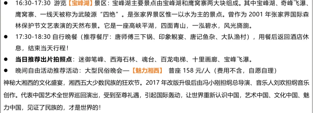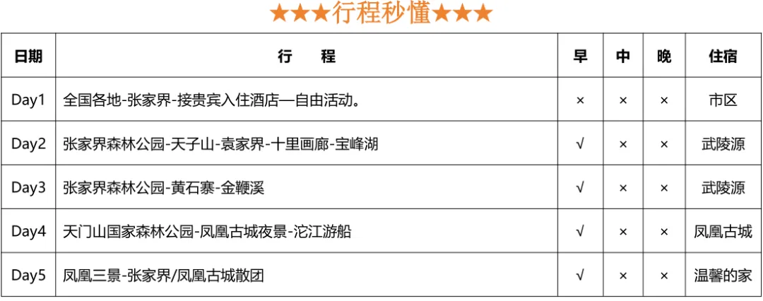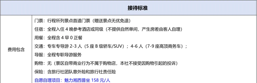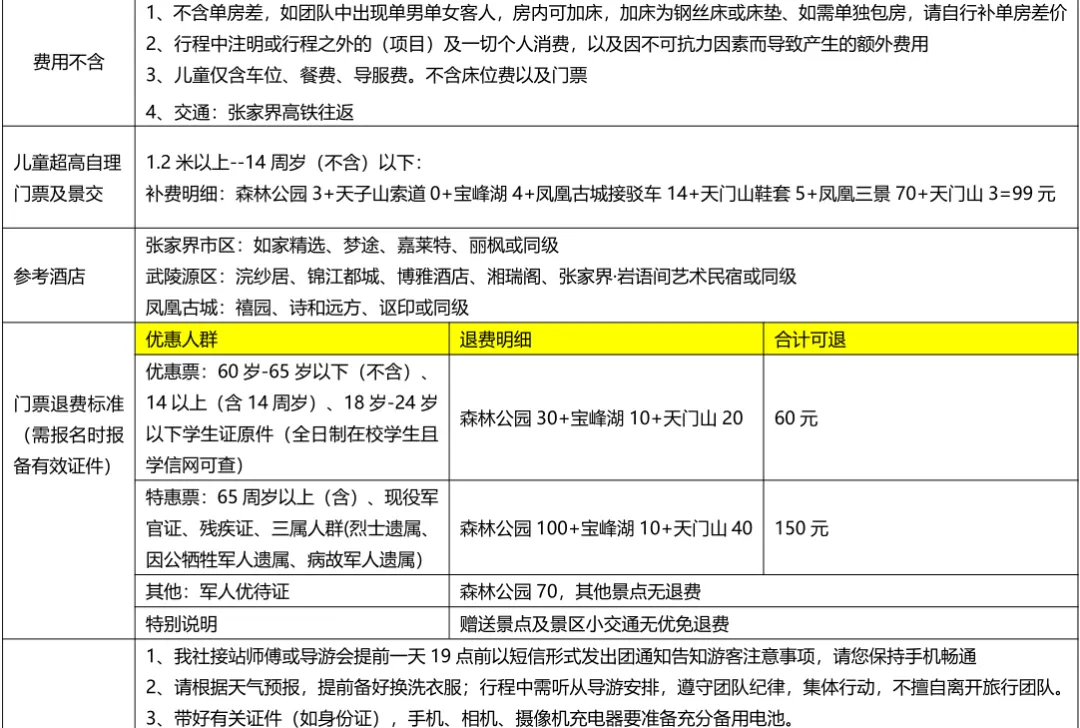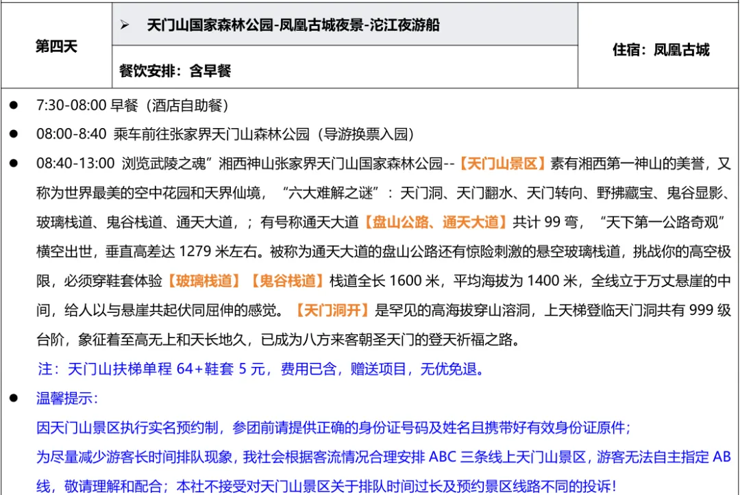 💛费用包含:张家界火车/高铁/机场24h接送站+5天旅游车费+景区大门票+4晚4钻住宿(每间房赠送2份早餐)+导游服务+保险