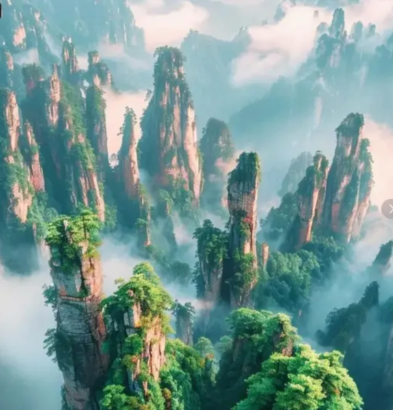 袁家界名气大,电影取过景,哈利路亚山就在那儿,风起时像漂在空中。