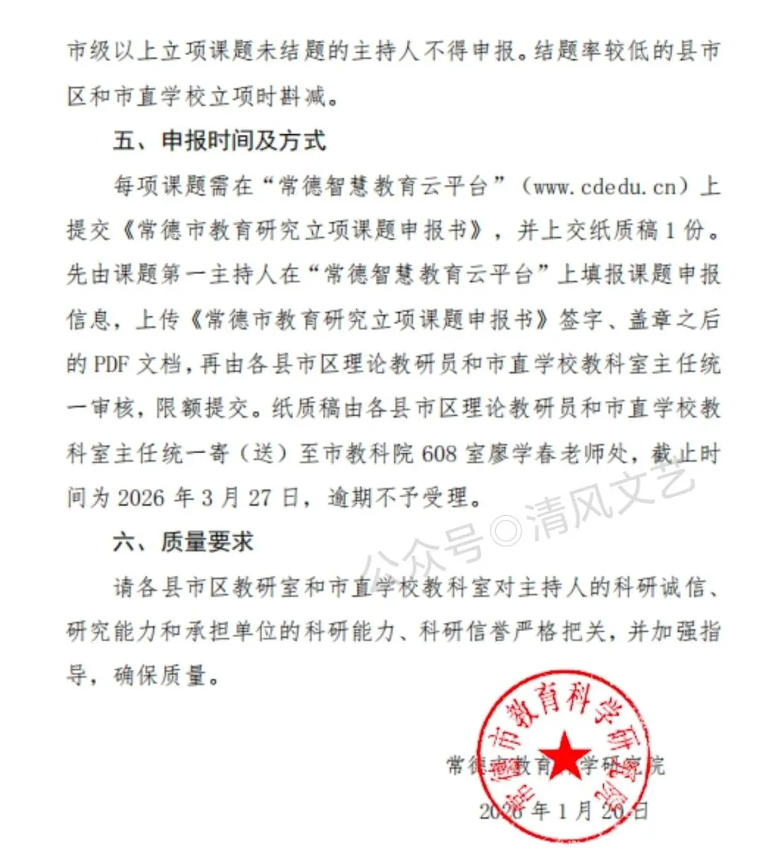 【课题】常德-2026年度教育研究立项课题申报工作