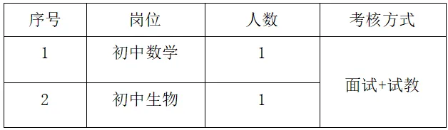 根据学校教育教学工作需要,我校面向社会公开招聘初中数学教师1名、初中生物教师1名,具体事项公告如下: