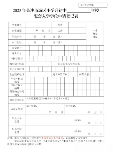 (长沙小升初配套入学申请表)