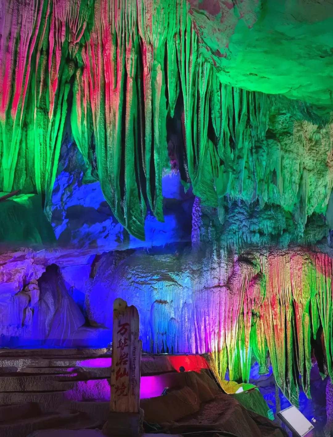 之后前往【万华岩景区】是是国家4A级旅游景区、国家地质公园及国际风景溶洞协会会员单位,占地面积约0.95平方千米。景区以喀斯特岩溶地貌为特色,核心景观为仍在发育的地下河溶洞系统,总长度超过9千米,其中主洞万华岩长2550米,流域面积28.5平方千米,拥有"水下晶锥""石蛋生笋"等全球罕见溶岩景观