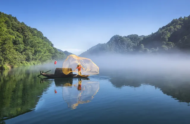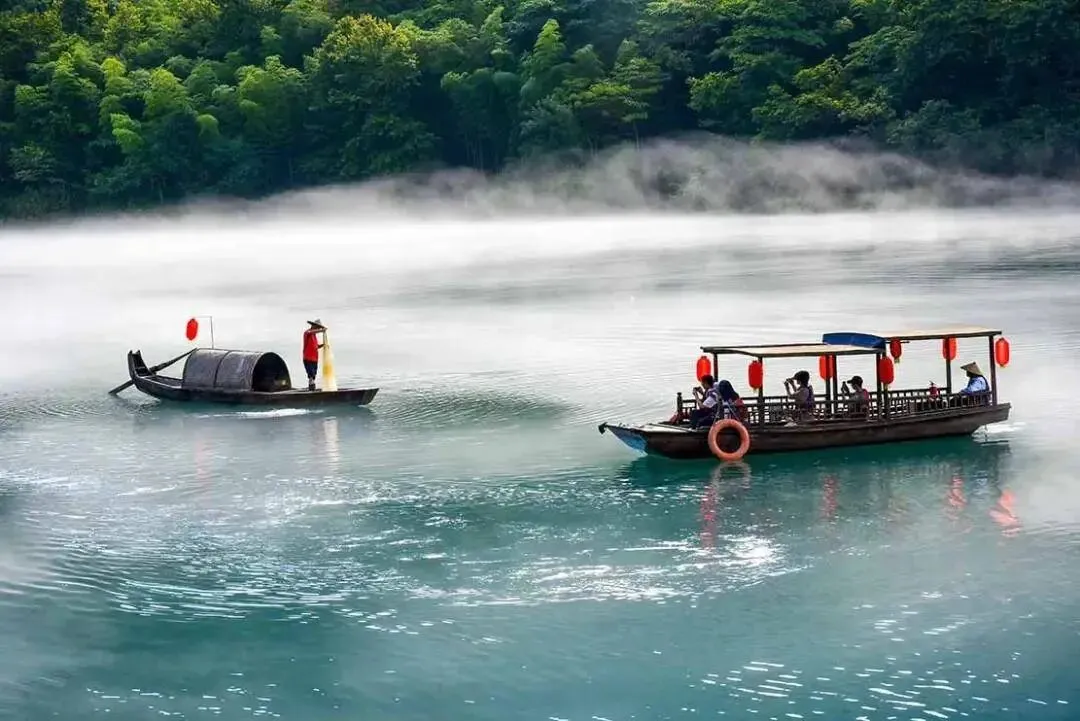 酒店早餐后前往国家5A景区【东江湖景区】人间天上一湖水,万千景象在其中。湖面笼罩水蒸气再有渔夫撒网变成一片云海,雨雾缭绕的小东江,又名“雾漫小东江”,舟行碧波上,人在画中游的优美画卷。