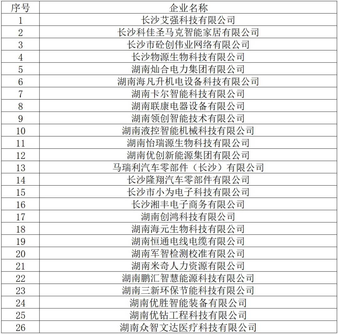 长沙经开区共26家企业入选《湖南省第十三批创新型中小企业拟认定名单》