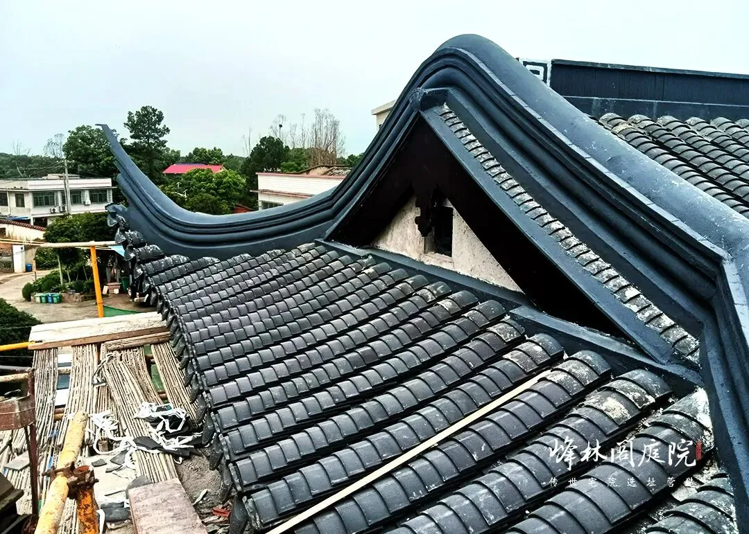 青瓦从檐角向屋脊蔓延,像给屋顶系上青丝带。工匠弯腰校准每片瓦的角度,让它们既守得住独特风格,又挡得住风雨,屋面在蓝天下起伏,瓦缝间漏下的光,在地面拼出屋宇的剪影。
