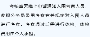 4、体检:预录用人员参加体检,体检内容参照公务员体检标准。体检费用由考生自理。