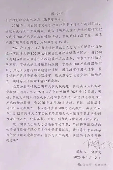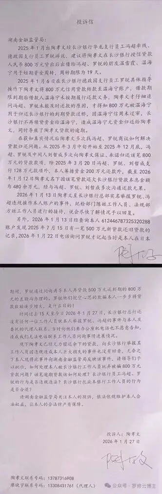 2026年1月13日,走投无路的陶孝文携材料至长沙银行总部,实名举报冯超。接待的纪检与法规部门工作人员态度暧昧模糊,承诺“尽快了解”,却连一个可后续联系的座机号码都未留下。