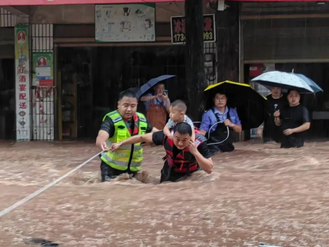 2025年5月22日,桃源县突降暴雨。当日早上5点至8点,佘家坪镇累计降雨量155毫升,转瞬洪水已深至腰间,当天正逢赶集,有商贩报警称被困在菜市场,罗奇在救援商贩途中,发现有祖孙二人被围困在一处民房中。湍急的洪水从侧后方进入街道,冲刷着民房。民房随时都有被冲垮的风险,罗奇同志立即带领民辅警开展救援工作。他把两岁左右的孩子捆在背上,固定绳索系在腰间,一手牢牢抓住孩子的手,一手抓紧事先绑好的安全绳,在夹杂着碎石破瓦的洪水中缓慢移动。他一边奋力抵抗洪水的冲击,一边安慰孩子:别怕,抱紧我。最终将祖孙二人安全转移。随后又立即投身到救援其他被困群众的工作中,当天共安全转移受困群众8人。中午放晴后,洪水渐渐退去,罗奇同志又带领民辅警开展清扫路面等灾后恢复工作。罗奇同志抢险救人的事迹在当地群众间广泛流传,并先后被新华社、长安剑、湖南日报、湖南电视台等各大媒体争相报道。