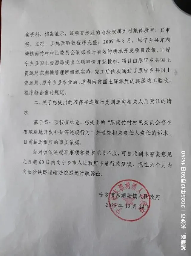 2、若经调查确认原宁乡县东湖塘镇南竹村村民委员会及相关责任人存在违规申报、套取国家财政补贴等违法违规行为,恳请贵政府依法追究相关单位及责任人的相应行政责任;若涉嫌刑事犯罪,依法移交司法机关处理。