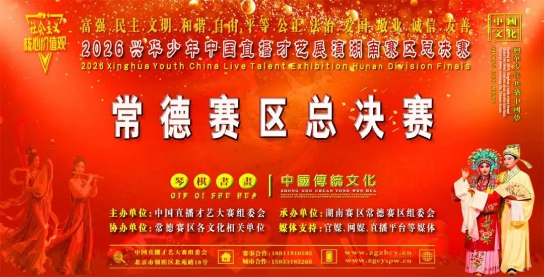 2026中国云赛展演活动以习近平新时代中国特色社会主义思想和深刻把握习近平文化思想为指导精神。全面贯彻落实中共中央、国务院印发的《新时代公民道德建设实施纲要》和《关于全面加强和改进新时代学校美育工作的意见》的通知精神,立足新时代人民群众思想特点和发展规律,在全社会大力培育和践行社会主义核心价值观,为促进常德全市人民道德素质和文明素养不断提升。加强常德优秀艺术人才队伍的建设,丰富常德公共服务多元化,增强全市人民的文化自信获得感和幸福感,选拔和储备优秀文化艺术人才,不断推动全市公共文化服务。有中国直播才艺大赛组委会、华中赛区组委会、湖南赛区组委会、常德赛区组委会共同开展“2026兴华少年中国直播才艺展演云端双线总决赛”湖南常德赛区系列文化展演活动。