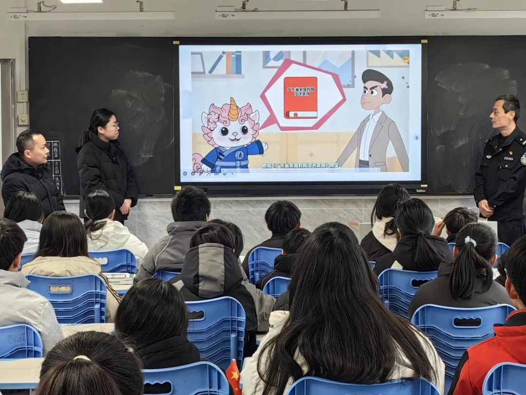 在长沙中学,针对中学生认知能力提升、社会接触面逐步扩大的实际情况,法治课内容更具深度和针对性,对《广东省家庭教育促进条例》以及新修订的《中华人民共和国治安管理处罚法》进行解读。