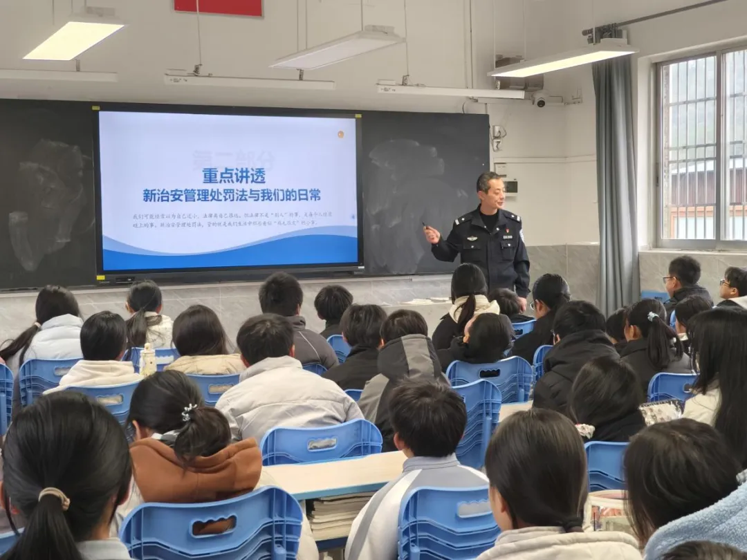 法治副校长结合中学生可能遇到的实际情况,如网络安全、校园欺凌、寻衅滋事、盗窃、故意损毁财物、违反公共场所管理秩序等方面,通过以案说法、法条解析的方式,深入浅出地阐明了相关行为的法律边界、违法后果及需要承担的法律责任。特别强调了新法打破行政拘留“一律不执行”的刚性惯例,不再单纯以年龄作为“免罚金牌”,而是引入“行为危害性”和“再犯可能性”作为考量因素,对极少数恶性违法或屡教不改的未成年人形成有效法律威慑。同学们纷纷表示,这堂法治课让自己对《治安管理处罚法》有了更清晰的认识,更加深刻明白了“法律面前无特殊群体”。