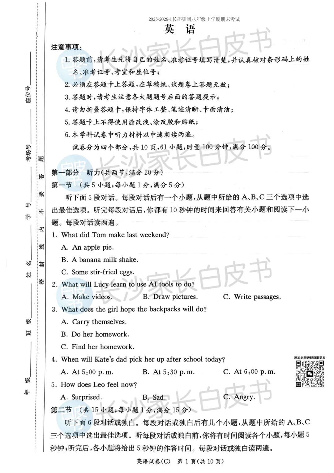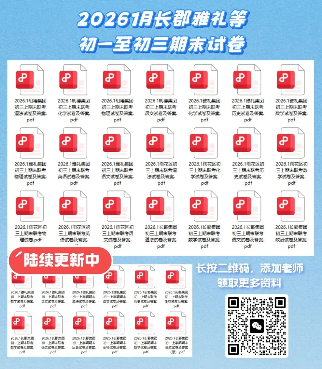 还为大家准备了2026年1月份长沙各集团初中期末真题试卷,抓紧领取吧!