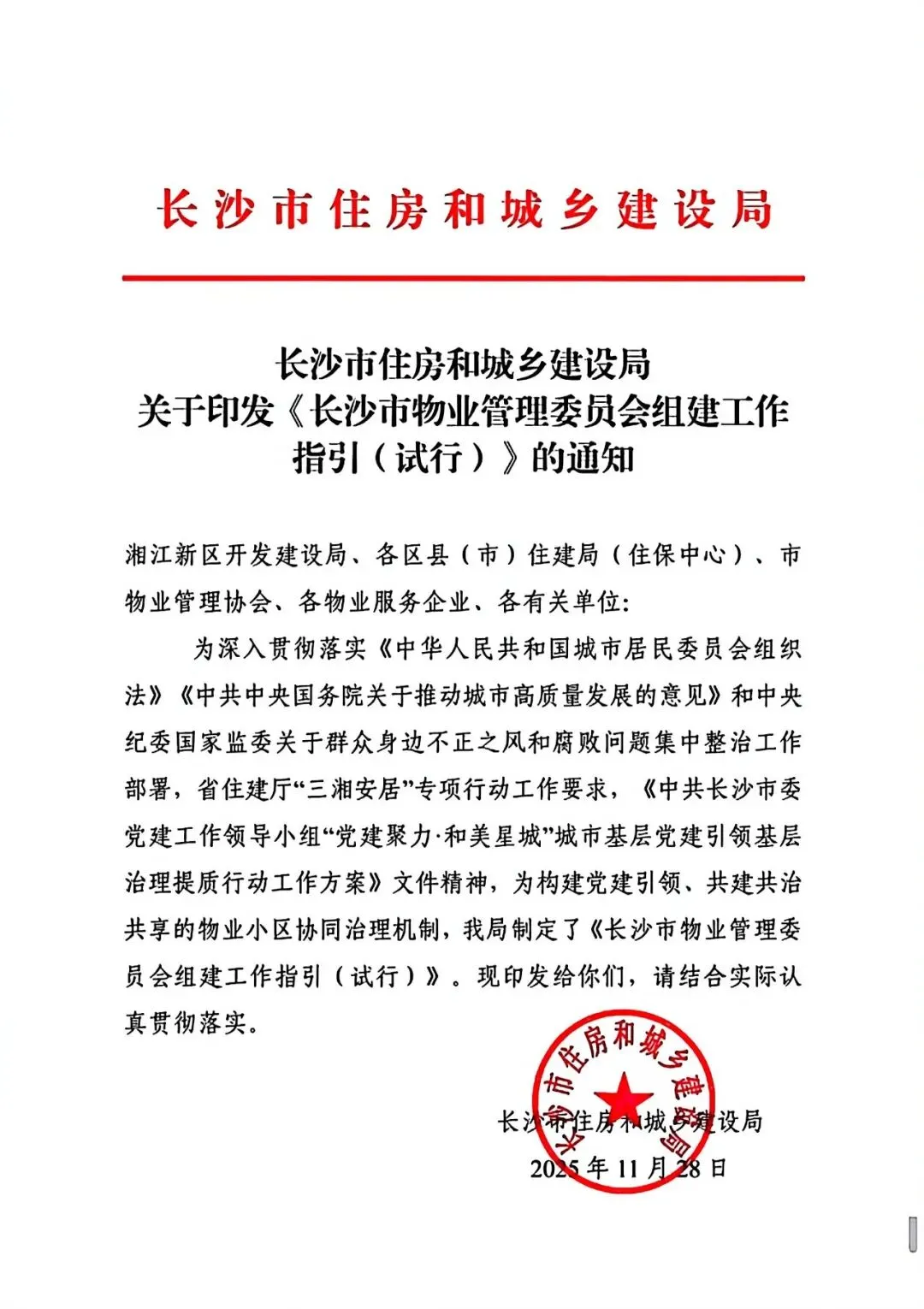 经过多人提出合法性审查,长沙物管会红头文件试行2个月后暂停执行2025年12月1日,长沙市住房和城乡建设局(以下简称“长沙市住建局”)印发《长沙市物业管理委员会组建工作指引(试行)》(以下简称《指引》),试图通过设立“物业管理委员会”(以下简称“物管会”)破解部分小区“业委会难产”“业委会瘫痪”等治理难题。然而,该文件试行仅2个月,便因多位市民及主体从不同维度提出合法性审查申请,于2026年1月22日被长沙市住建局自行暂停执行,引发社会对基层治理规范性与业主自治权益的深度关注。一、文件出台:试图破解基层治理痛点
