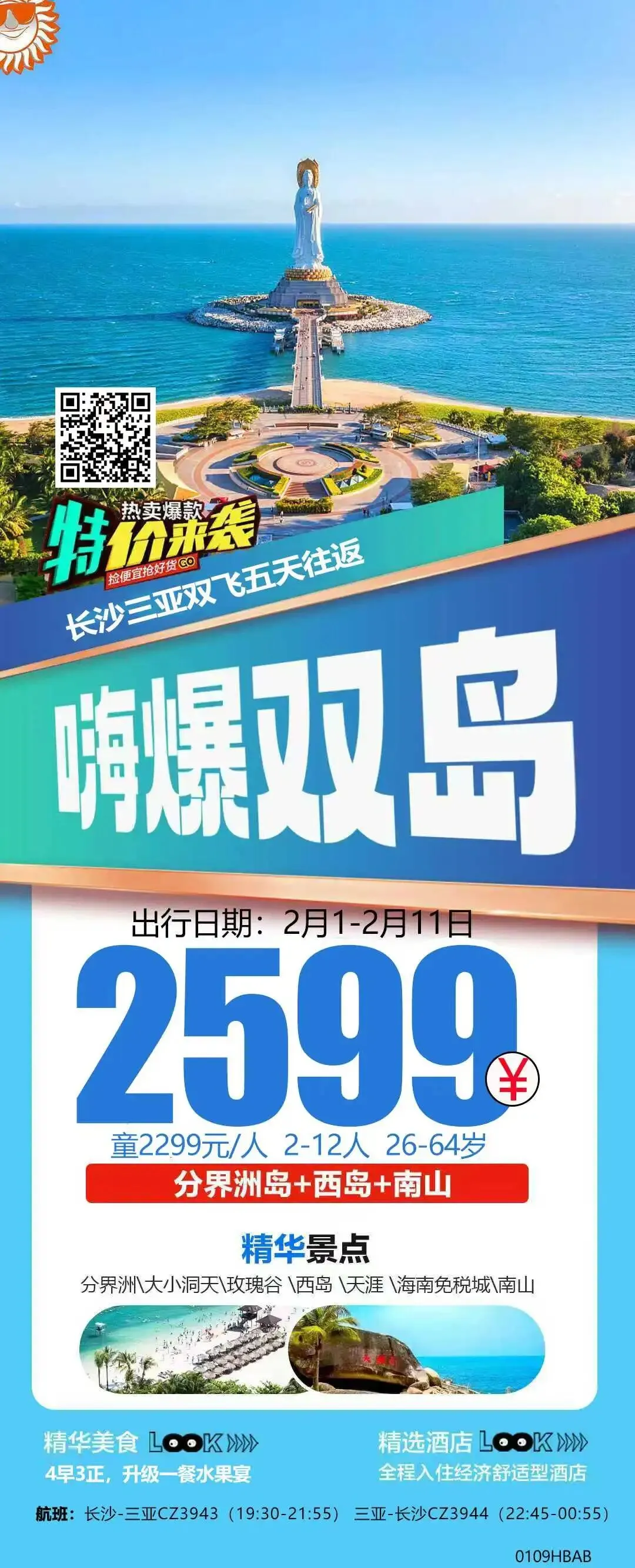 【乐游|海南】嗨爆双岛:长沙直飞三亚5日游,长沙起止2599+130元(2月初版)