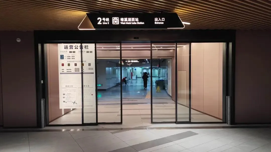 近日,长沙地铁2号线梅溪湖西站1号出入口通道旁的商业出入口开通了。
