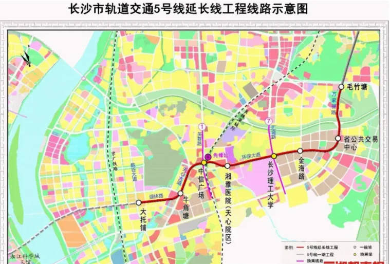 ✅长沙市轨道交通5号线延长线工程线路示意图