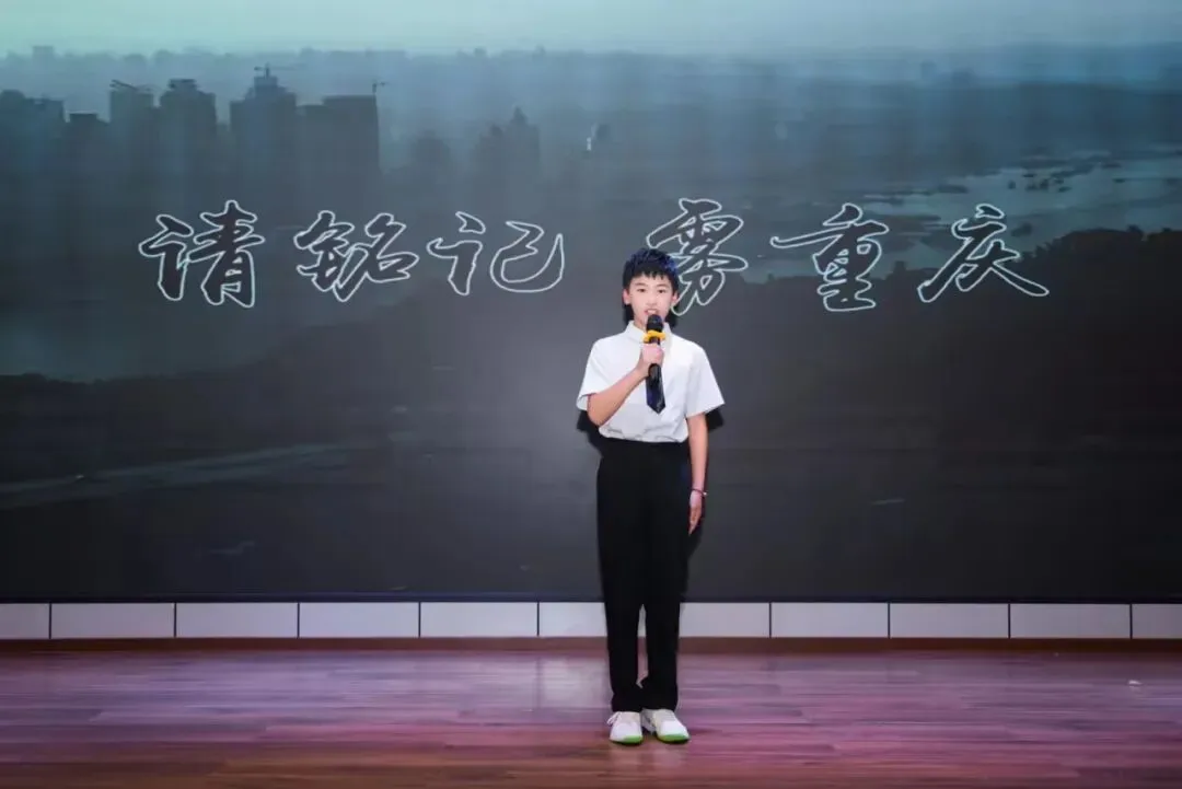 刘哲铭小朋友作为活动现场最年幼的“花二代”进行了《请铭记 雾重庆》朗诵。
