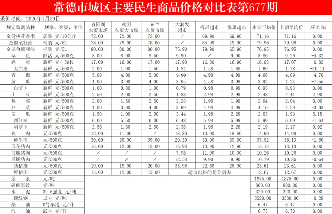 为方便群众了解民生商品市场价格动态,我委通过“常德发改”发布近期市城区主要民生商品价格情况。