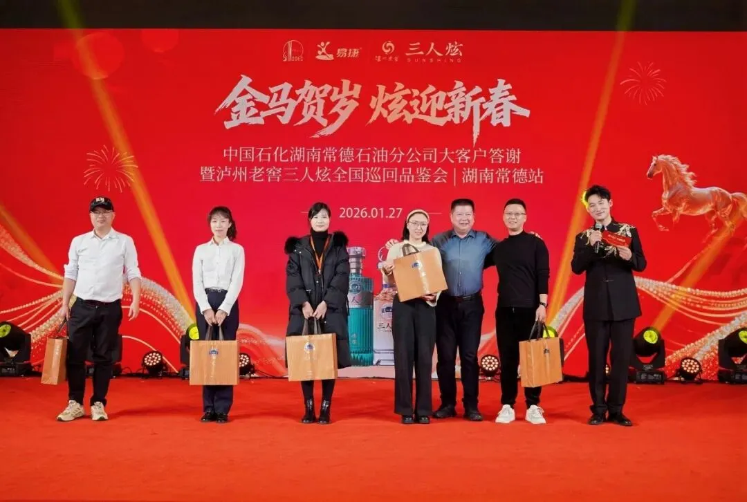 新岁序章,万象焕新。1月27日,中国石化常德石油分公司大客户答谢、泸州老窖三人炫品鉴暨新春团拜会盛大启幕,诚挚邀请常德石油各领域的合作伙伴与客户代表齐聚一堂,共叙情谊,共品佳酿。下午16时起,嘉宾们陆续到场,在年货市集里挑选特色好物,参与趣味游戏,写春联、制香薰等民俗体验,现场同步开启年货节直播带货,让线上观众也能共享热闹氛围。本次品鉴会共实现年货销售300余万元。