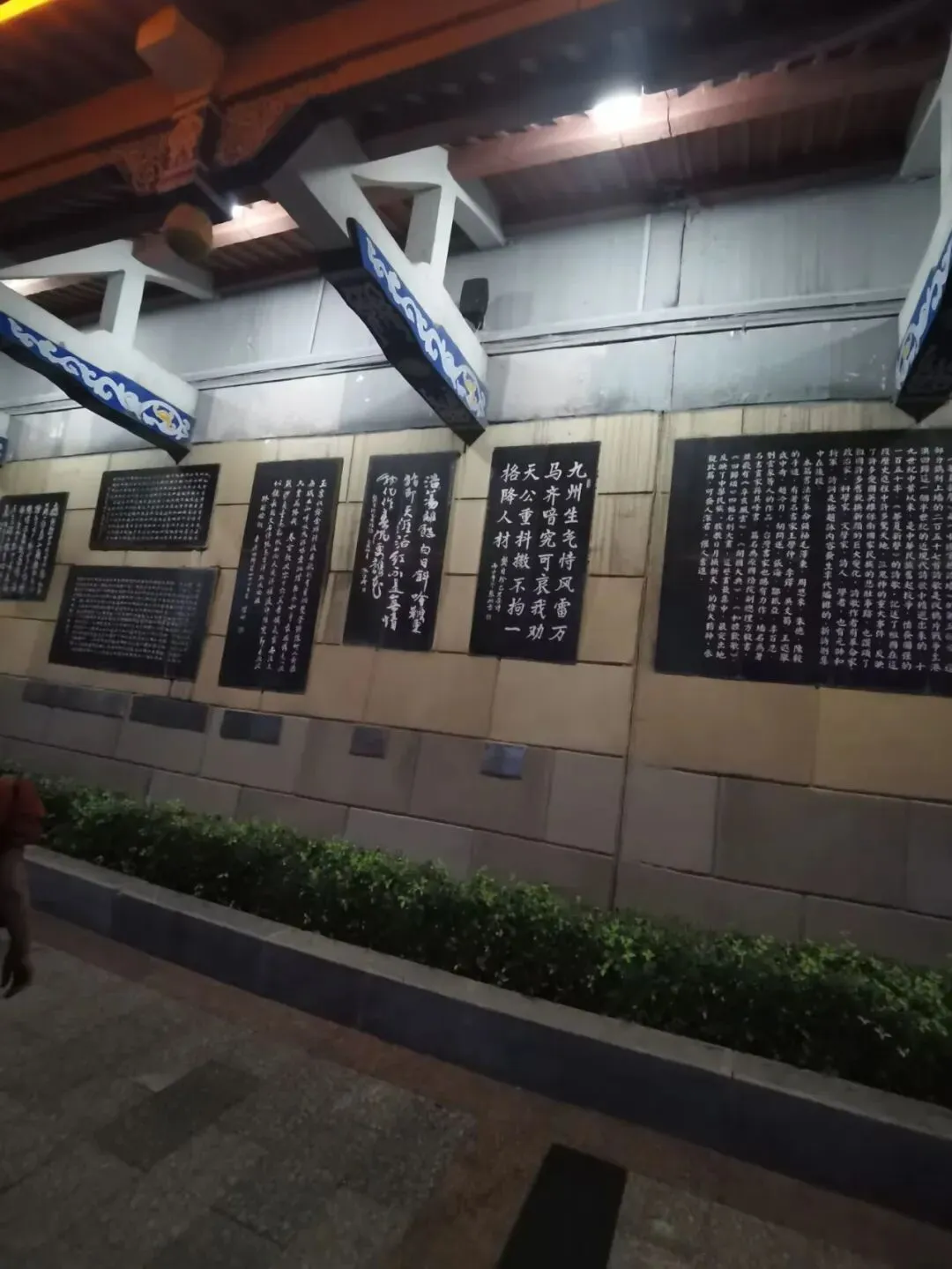 行至《百代沧桑》篇章,石壁上的浮雕与诗句交叠,刻画出历史的烽烟与人事更迭,我忍不住伸手轻触冰冷的石面,仿佛能触到岁月深处的脉动。转到《名贤题咏》,许多熟悉的古人名字跃入眼帘,他们的吟咏或豪放或婉约,在灯影下泛出温润的光泽。我们走走停停,有时倚着栏杆读一首长诗,有时在画刻前静思片刻,生怕错过任何一段与常德相连的情怀。