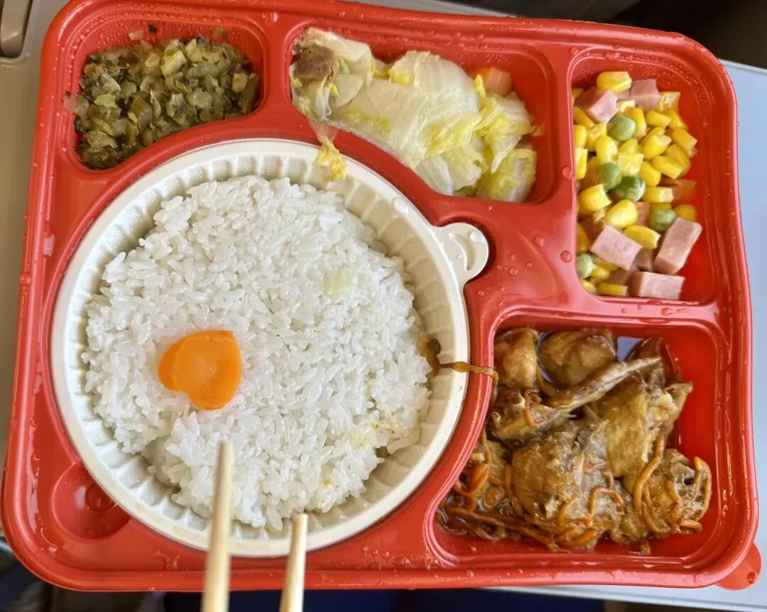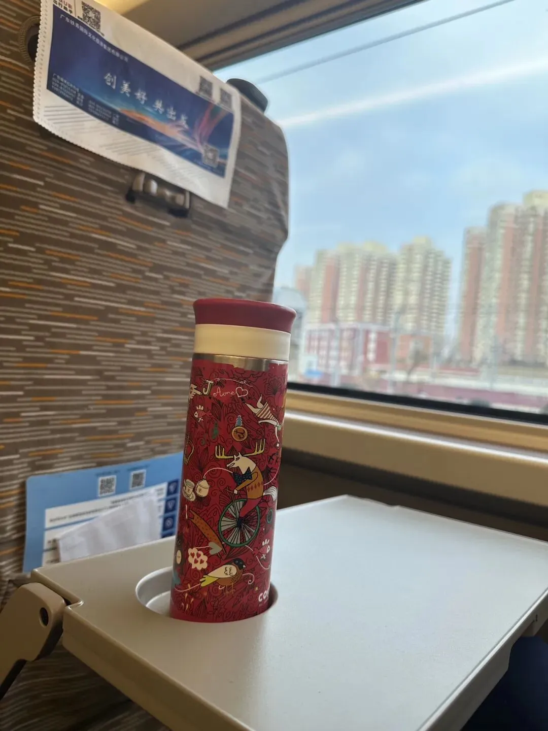 一大早就起床了,吃完早饭收拾好行李出发啦。虽然是工作日早高峰时间,但还是很幸运的一路上三趟地铁都有座位。九点半到了北京西站,踏踏实实上车启程。北京还勉强能看见一点儿蓝天,越走越阴沉,大雾弥漫,也许还裹挟了霾,中午和闺女都是吃的火车上的盒饭,现在高铁盒饭味道还可以。